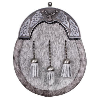 - Full Dress Antique Stag Design Sporran - Natural Calfskin