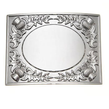 - Thistle Bordered Oval Mirror Kilt Buckle - Chrome Finish