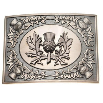 A kilt belt buckle can be the final flourish that your outfit needs. The kilt buckle may be very ornate, and contain similar motifs to the sporran cantle, sgian dubh and kilt belt . Kilt buckles come in many different designs from clan crested, thistle, celtic, highland cow and serpent designs many different finishes. The two main finishes are the shiny polished finish (to give a silver kilt belt buckle effect) and antique finish.