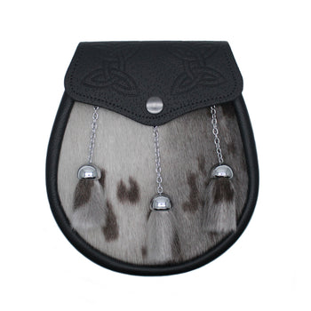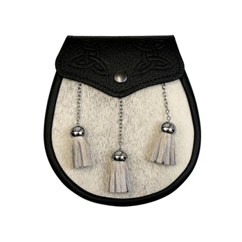 - Scottish Made - Semi Dress Celtic Embossed Sporran - Grey Sealskin