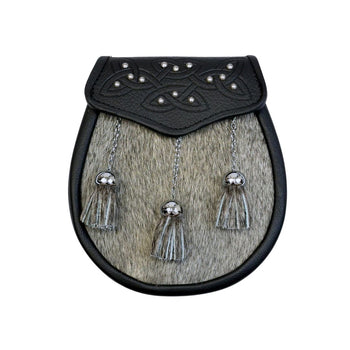 Sold out - Scottish Made - Semi Dress Circular Studded Sporran - Grey Sealskin