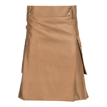 Utility kilts, or work kilts, are made from heavy weight cotton and designed to be hard wearing and durable. These cargo style kilts come in plain colors or in tartan and feature a number of pockets which makes them very practical.