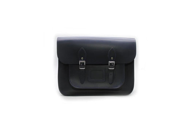 15 inch Real Leather Buckle Satchel Bag - Blue