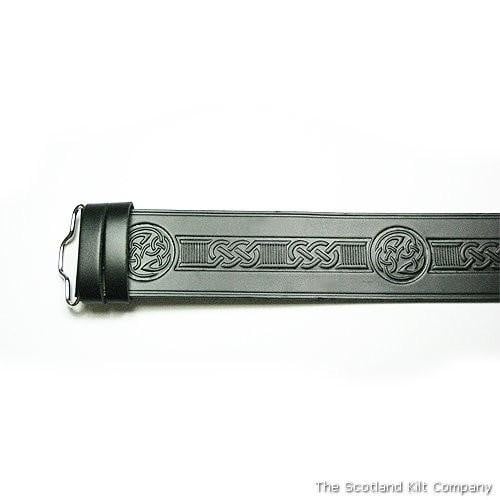 Heavyweight kilt belt which features celtic swirl design. Made from hide leather.