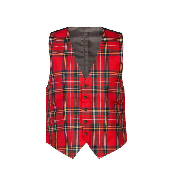 Men's tartan waistcoat made from polyviscose in Royal Stewart tartan with 5 button front and 2 front pockets.