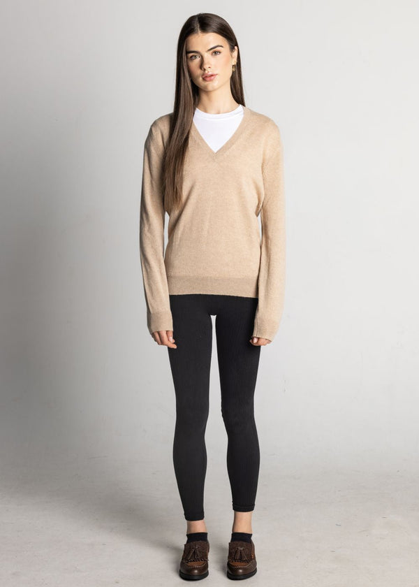 Isla Women's Scottish Made Cashmere V-Neck Jumper - Camel