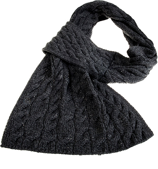 A beautiful 100% supersoft merino wool one size wide scarf with cable design