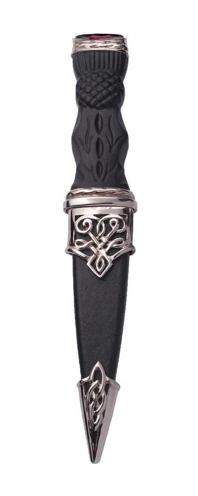 Morar Plated Pewter Sgian Dubh with coloured stone top and leather covered sheath.
