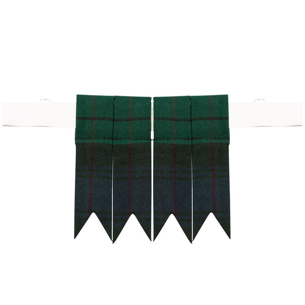 These tartan kilt hose flashes come with elasticated garters with velcro fastening. The garters can fit any adult leg size.