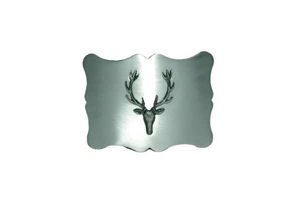 This antique finish buckle has scalloped edges and features a stag design in its centre. This buckle measures 4" X 3" and is made from a durable steel alloy.