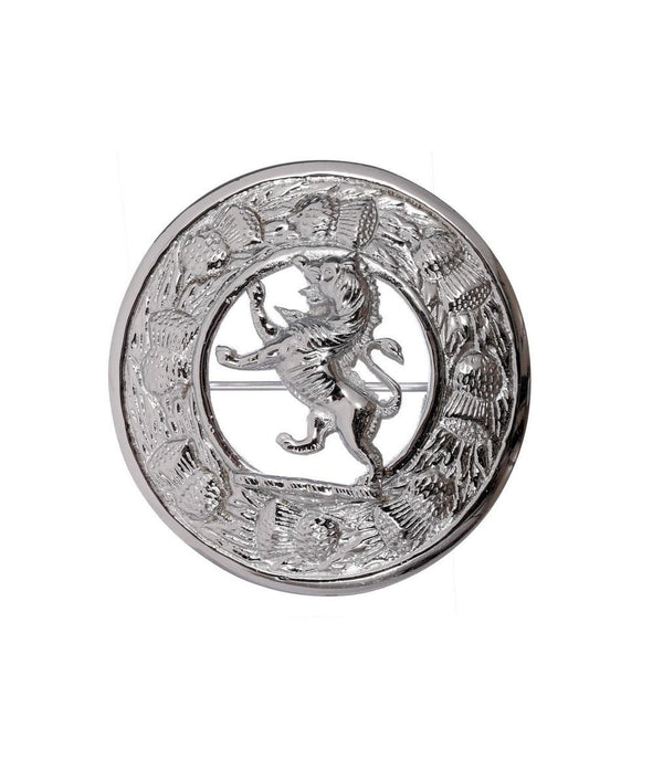 Thistle Design and Lion Centre Brooch - Chrome Finish